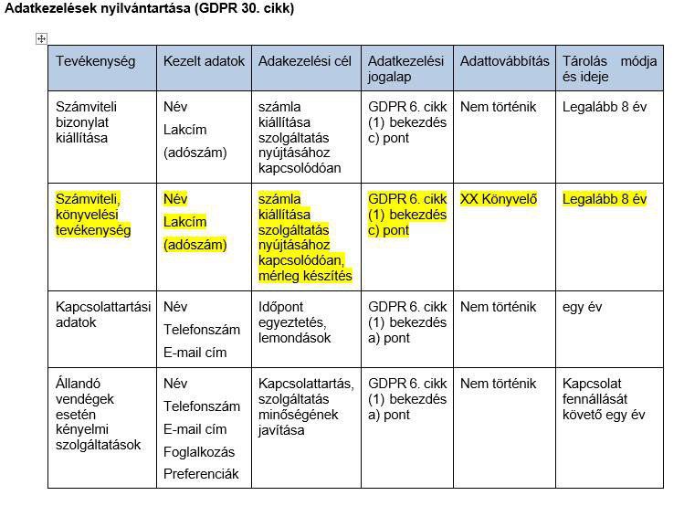 Adatkezelések nyilvántartása :